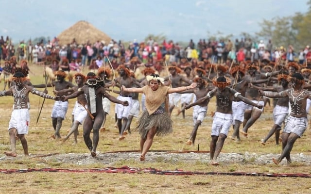 Khi du lịch đến thung lũng Baliem, tham gia vào lễ hội của người Dani là một trải nghiệm văn hóa vô cùng đặc sắc mà bất cứ ai đi tour du lịch Indonesia cũng đều không thể bỏ qua. Lễ hội Baliem thường sẽ diễn ra vào tháng 8, là một sự kiện lớn mang đậm bản sắc văn hóa bộ tộc. Trong lễ hội này, du khách sẽ có cơ hội được chứng kiến các màn tái hiện trận chiến cổ xưa, với các chiến binh mặc trang phục truyền thống và sử dụng vũ khí như giáo và cung. Bên cạnh đó, bạn còn được tham gia vào các nghi lễ truyền thống, múa dân gian và biểu diễn nhạc cụ đặc trưng của người Dani. Các lễ hội không chỉ là dịp để tìm hiểu sâu về phong tục tập quán của người bản địa mà còn là cơ hội để trải nghiệm không khí lễ hội sống động và cảm nhận sự giao hòa giữa truyền thống và hiện đại.